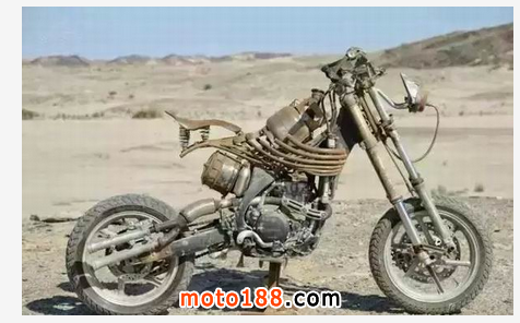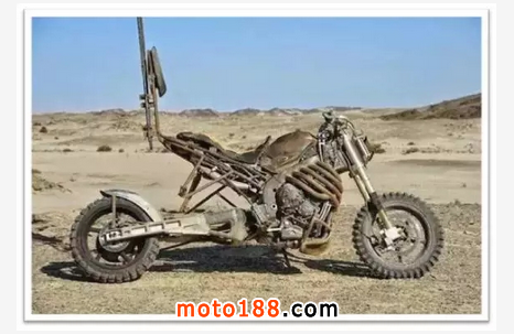 從下面這些改裝車(chē)中,我們只能隱約辨識(shí)出原有品牌,對(duì)于一部世界末日題材的電影來(lái)說(shuō),末日機(jī)械美學(xué)的出現(xiàn),使得摩托車(chē)的設(shè)計(jì)達(dá)到了一個(gè)新的高度。