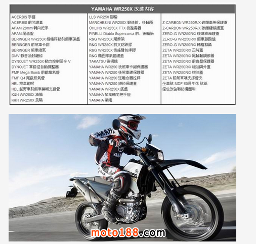 核心提示: YAMAHA WR250X由純種越野電單車YZ250F及WR250R換上街用輪胎而來的supermotard車系,適合街道駕駛之外,也具有越野電單車的靈