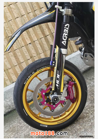 ●原廠的鋼絲輪框,改用了金色的MARCHESINI WR250X 鍛造前、後輪圈,輕巧強硬,更有利操控。