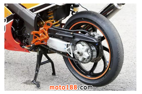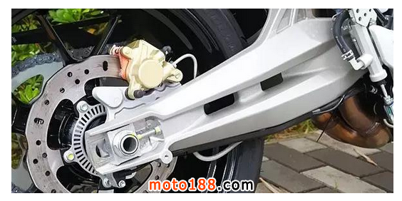 后搖臂需要承受強大的動力輸出,起步時發動機扭力帶來向前的驅動力。