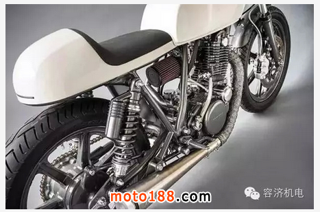 經過改裝的“CBC”外觀十分簡潔、大方,還很低調。它不僅是簡單的外觀改裝,最大輸出也進行了了適當調整。發動機并沒有太大的改動,只是由fladside carb(三國)TM36偏置化油器和K&N莢式濾清器帶來了小小的性能提升。排氣管末端加入了supertrapp排氣音效器,經典線條和底部邊緣的光滑曲線取代了原本看似廉價的金屬棱,拋光的緞面處理加上新潮的管道外包,無不產生令人敬畏的震撼效果。