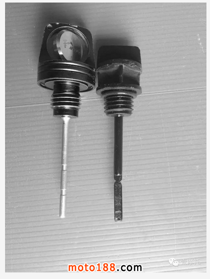 而大排量車子大多數是一個螺絲,而不是螺絲帽。將油放干后,建議將費油倒進一個空的機油桶里,測量一下油量,對比與上次保養時加注的機油量,這個做法看似簡單,但對于技師判斷發動機工作情況有一定重要性。