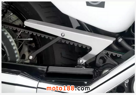 透明皮帶護蓋,為傳動系統提供更強保護的同時,也為車輛點綴上了些許的科幻感。