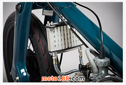 該作品采用了一個 “ 咖啡賽車 ” 的造型,鄧立普的高性能賽車級的輪胎,完全拆除了儀表板。而原廠的 Honda 發動機被完全棄用,取而代之的是來自重慶銀翔的、最大馬力輸出達到 22 匹(經改裝之后的數字)的 150 cc 臥式發動機。