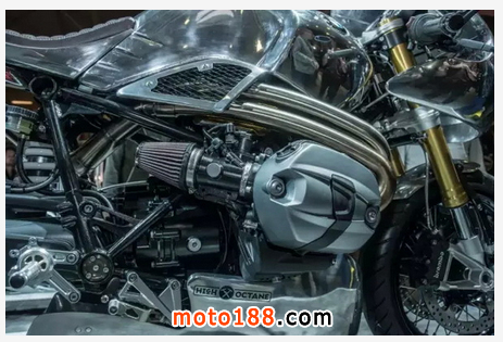 這款改裝作品是由荷蘭“High Octane Speed Shop”定制打造的,原型車是寶馬的R nine T。雖然整體風格屬于復古的Cafe Racer,但給人的未來感十足,無論是造型還是質感都十分獨特,圓潤的外表配上采用非對稱設計的頭燈讓人感覺十分“怪異”,而其高反光的質感也給人一種“液態金屬”的流動感。而最為亮眼的還是鑲入后駝峰的排氣設計,工業質感十足。