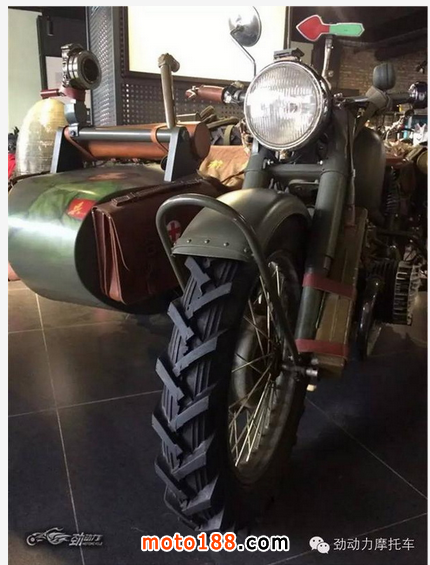 啞光綠的車身顏色已經成為復古軍車的標志,改裝的泥地越野輪胎配合帶防塵罩的正立式液壓套筒前叉,第一眼看上去就被它的霸氣所震撼。