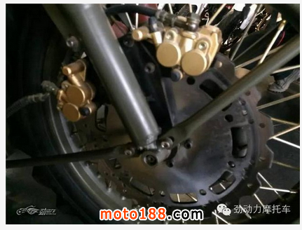 它的制動系統改裝得非常獨到,采用兩套單向雙活塞制動卡鉗,配合單鉆孔盤能夠給長江750提供更好的制動力。