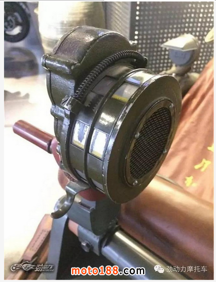 油箱蓋更像是一件工藝品,細致的做工,光滑的手感,使得粗獷的軍用摩托車顯露出了一絲鐵骨柔情。