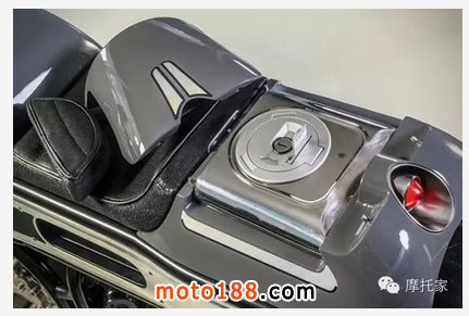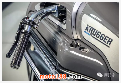 油箱口、鑰匙總成、前后燈具全設計成內藏式。而且從手把、腳踏、座椅等等改造風格隱約看出復古咖啡風范。前后單搖臂的設計形式更是克魯格一貫的強項。