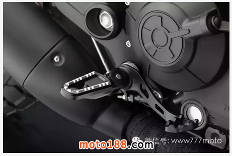 全身素黑的配色隱約在油箱與前土除上可以看到黃色的拉線,讓整體不會(huì)過(guò)于單調(diào),油箱與前土除顏色以亮灰做為搭配,在這么低調(diào)的配色底下,還是能發(fā)現(xiàn)許多精美的細(xì)節(jié),不同的材質(zhì)之間互相交錯(cuò)的美感,讓人不禁贊嘆,在這么素的配色下還能擁有這么多的層次感,相當(dāng)不容易!