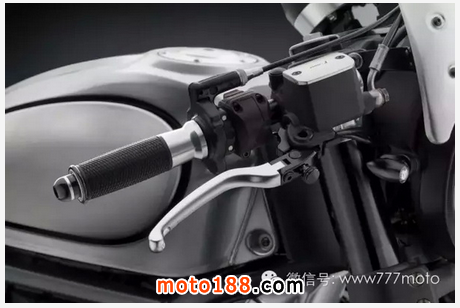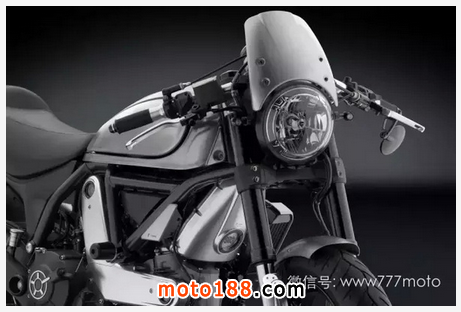 全身白銀色的配色下,加上頭燈上的導(dǎo)流板,全車以Cafe Racer 的風(fēng)格下去打造,簡(jiǎn)單的分離式手把、可調(diào)整腳踏、圓翹的椅墊…..等,于其他各項(xiàng)細(xì)節(jié),使整臺(tái)車更具Cafe Racer 的風(fēng)格,改上分離式手把后,原本的手把座就變得很突兀,Rizoma 用簡(jiǎn)單的巧思,在手把座上直上儀表座,讓原本空虛的龍頭顯得更加緊湊,前剎保護(hù)蓋增添細(xì)節(jié)上的質(zhì)感,水箱護(hù)蓋不只能保護(hù)水箱,還能提升視覺質(zhì)感,側(cè)邊下移的牌架,更凸顯Cafe Racer 的風(fēng)格。
