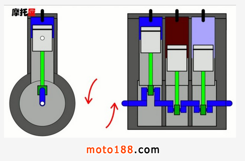三缸引擎一般為并列三缸,比如貝納利TNT899奧古斯塔F3和凱旋675就采用了這種結(jié)構(gòu),曲軸角度為120°(也有180°),汽缸點火次序通常為123或者132。安裝方式通常為橫置三缸,但是也有“叛逆”家伙,比如凱旋Rocket III便采用了縱置三缸。還有更任性的本田則生產(chǎn)過V型三缸引擎,呃,就沒有本田沒造過的引擎結(jié)構(gòu)。。。并列式三缸引擎兼具了四缸的高轉(zhuǎn)特性與雙缸的低扭,屬于折衷的結(jié)構(gòu)。