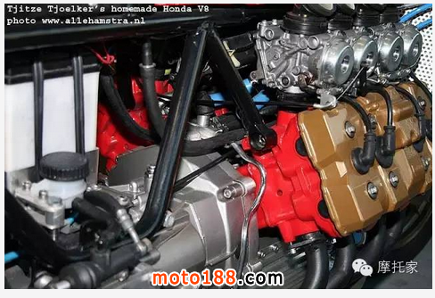 核心提示: Tjitze想要一部Morbidelli 850 V8,可惜非常昂貴,他便自己手工制作。 終于在2500小時(shí)后他完成了這部車。 他選用了2部直列4