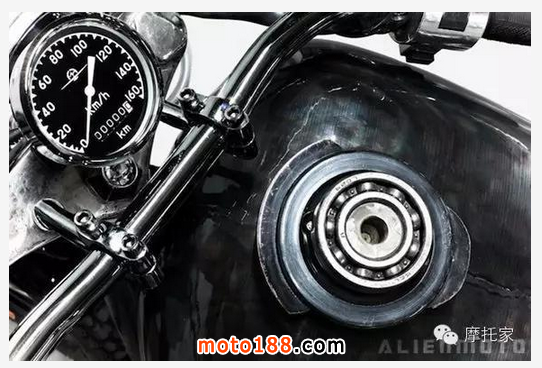 全車的設計亮點有很多,例如重新設計的軸傳動系統(tǒng);采用軸承打造的油箱蓋;蒸汽朋克風格的定制儀表。