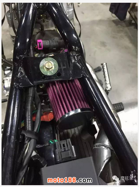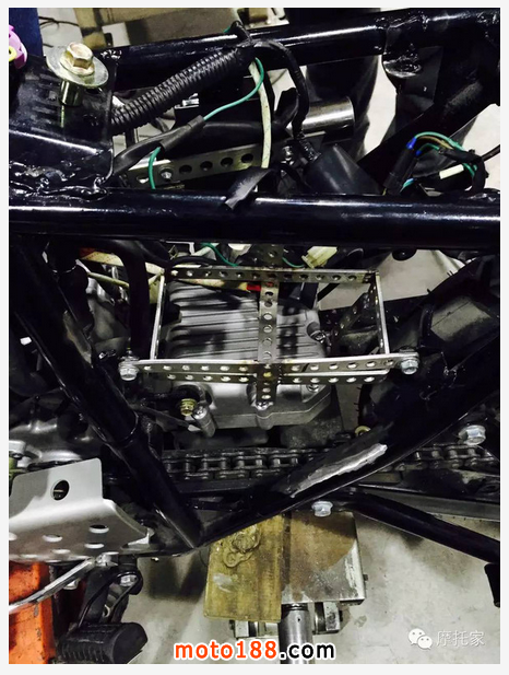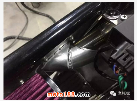 為了滿足秋銘那個車身變窄的要求,他們把排氣走入車架內,鋁合金側板是秋銘手工打造,排氣進入的方法也是很有特色。帶來的問題是車架內部的結構全部需要改變,設計新的電瓶支架,新的后擋泥板,新的空濾,還要考慮排氣的熱輻射問題。