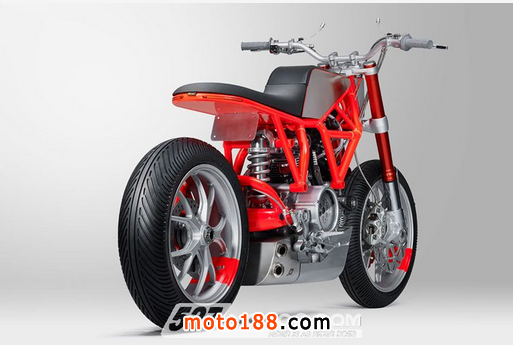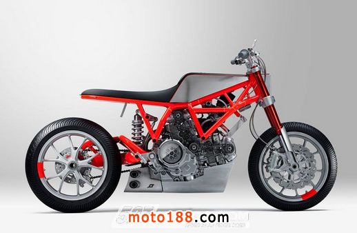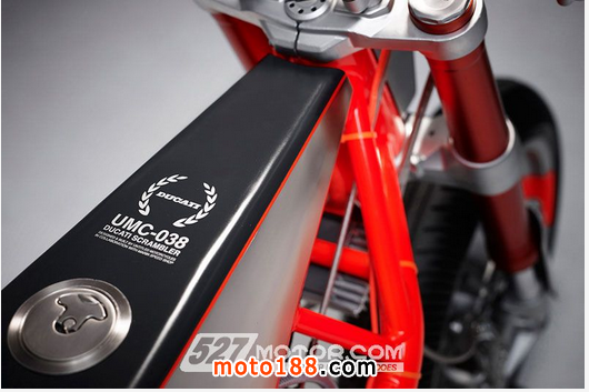 新車最具視覺沖擊力的就是裸露的紅色鋼管編織車架,為了與之相配,設(shè)計師將原款搖臂更換為Monster S2R的搖臂,讓新車的整體造型更為統(tǒng)一;另外,設(shè)計師還將Scrambler的前減震更換為鈴木GSX-R車型的Showa減震,并采用了Monster M796(前)和Monster 1100(后)的17英寸輪圈;新車采用LED頭燈和尾燈,尾燈的設(shè)計十分巧妙,因為它既能作尾燈,又能作轉(zhuǎn)向燈,這樣做的目的應(yīng)該是為了節(jié)約空間,保證新車簡潔的風(fēng)格。