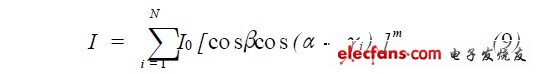 式中I 為LED 陣列的光強; in 為第n 種型號的單個LED 光源; N 為LED 光源的個數(shù)。