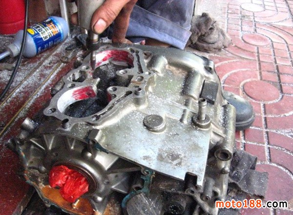今次決定開膛破肚,把內(nèi)藏挖空后,再合攏曲軸箱,進(jìn)行手工磨削擴(kuò)孔。