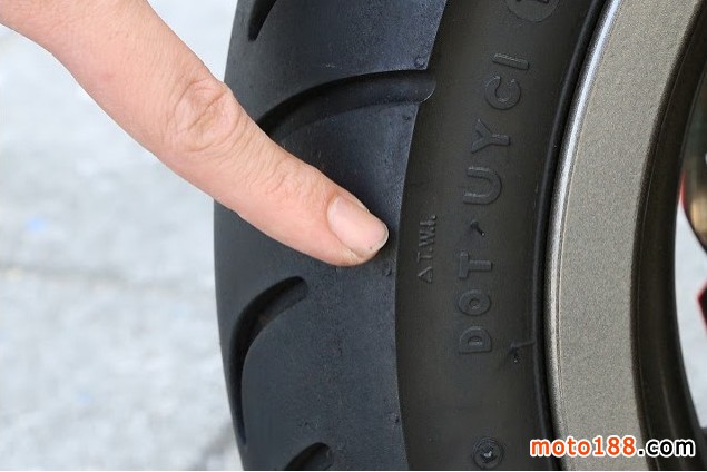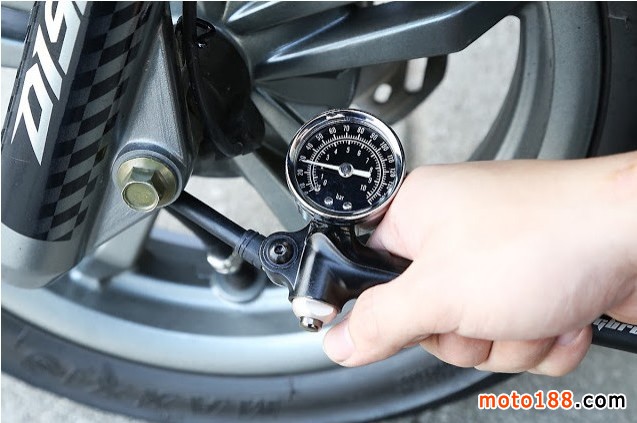 輪胎總共有三個部分要檢查:胎壓、胎紋、胎面,胎壓在正確合理的范圍,才能夠有效的發揮輪胎應有的功效,過高的胎壓雖然可以省油,但是會減少輪胎吸震的功能,在遭遇坑洞、彈跳等不平路面時,很容易因為輪胎無法吸收震動而導致打滑;過低的胎壓雖然能夠更有效的吸震,但是容易造成輪胎支撐性不夠,使輪胎指向性變差,同時也會讓機車更耗油。
