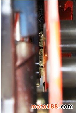 來令片可沿著碟盤向卡鉗方向看,即可看到來令片厚度