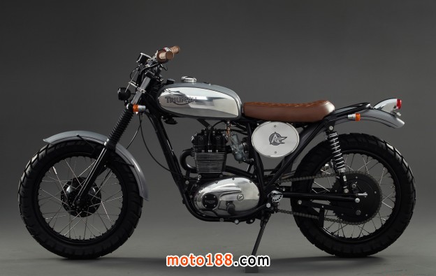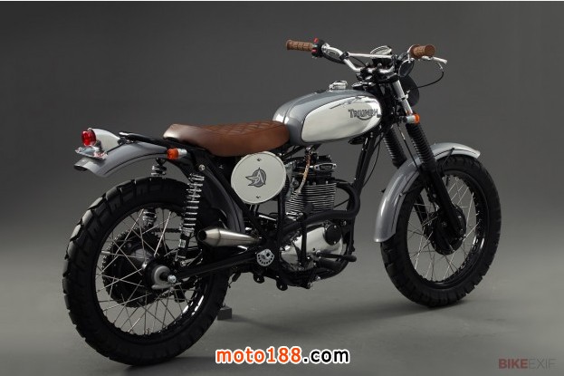 雖然這輛凱旋看起來像一輛技巧型的車,但是它的確是一輛可以合法上路的街道摩托車,灰色是托尼最喜歡的摩托車顏色,但是這次他同樣的加入了一些棕色作為填補。