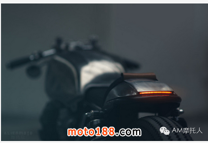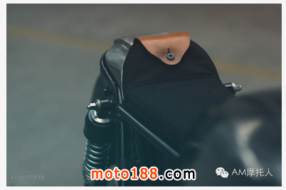 此外,手工打造的棕色皮革混搭14盎司牛仔單寧的座椅,復(fù)古范十足。制作時(shí)加入了多層防水蠟涂層,更甚的是還有一個(gè)隱藏的小口袋在后面,可以放一些小東西,皆具實(shí)用性和設(shè)計(jì)感。值得一提的還有專(zhuān)門(mén)制作的頭燈蒙罩。同樣是由真皮和單寧制作,前方留有矩形開(kāi)口。點(diǎn)亮?xí)r,開(kāi)口縫隙射出一道被塑形過(guò)的光源,猶如獨(dú)眼巨獸的惡魔之眼,超級(jí)有型,據(jù)說(shuō)靈感來(lái)自BMW的 Zündapps。如此討巧有創(chuàng)意的設(shè)計(jì)非常值得借鑒。