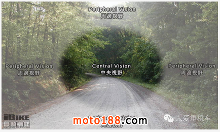 一如上圖所示,我們在轉(zhuǎn)左彎時需要周邊視野的情況也許不太明顯。但在轉(zhuǎn)右彎時,跑外側(cè)要貼住左邊路肩,還要提防路肩旁是否有沙石積水,這時候周邊視野的運用便顯得很重要。