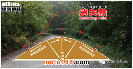 當「消失點」開始偏離中間點,游向視野兩旁時,表示人車開始接近彎道。「消失點」越向旁邊移動,代表彎道越急。當「消失點」移向中間時,代表接近彎道出口,在應付連續(xù)的陌生彎道時,我們只要依隨著以下的原則,對應著「消失點」的變化便可提升攻彎的流暢度: