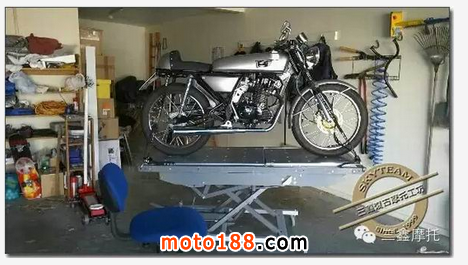 我的ACE還在不斷改進哦!自從上次我發了照片之后,我弄到了一張醫用床作為我的升降臺,并更換了車身的前部和后部,最近我又找到了一根很酷的皮帶,表面為黑色,兩側為紅色,作為攀帶掛在了油箱上。