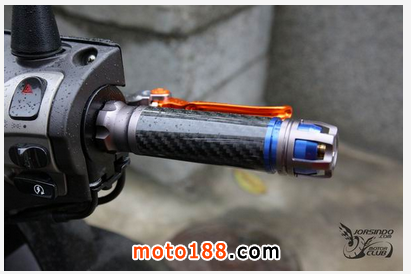 加油孔飾圈則改用水轉印碳纖維花紋改裝品。