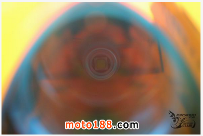 RAY的特色一刀流定位燈殼也做彩鈦電鍍處理,