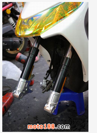 第一眼看到的是前土除鎖點在改裝前叉上與RAY 125不相容,