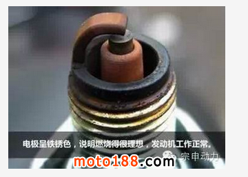 摩托車發動機化油器的故障,可以從火花塞電極的顏色來判斷。經摩托車化油器霧化后的可燃混合氣,在發動機缸體內燃燒以后,大部分的廢氣通過排氣管送出,少量的廢氣殘留物會粘附在火花塞電極絕緣體周圍,它是混合氣在發動機缸體內燃燒狀況的印證。