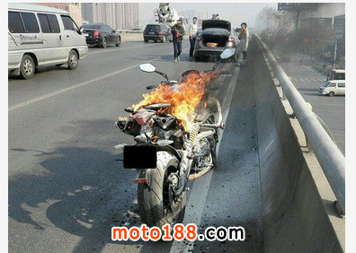 摩托車油路滲漏,容易引發車輛自燃,是件絕對不不容忽視的問題。上圖的黃龍600自燃問題,起始起火點位置并不是油箱附近,而是在后座下部(電瓶等電路位置所在),本圖意在提醒廣大摩友油箱滲漏問題,絕對不可以小視。
