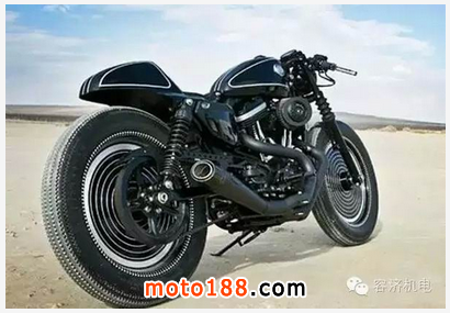 特別要注意的是,希望成為”咖啡騎士“的你,在增加任何一個能形成角度的部件在車體上時,都必須要注意角度的把握。在車體上一些細小的位置,也必須要注意角度的問題。通常情況下,在著手改裝之初,你的大腦中就應該有這樣的概念。盡可能讓那些能形成切角的部件都處于平行的位置,這會使你的車體造型更符合審美的要求。盡量讓車輛的前輪有一種像是嵌入在車體中的感覺。適當的前叉長度會讓車體展現出更多的“攻擊性”。