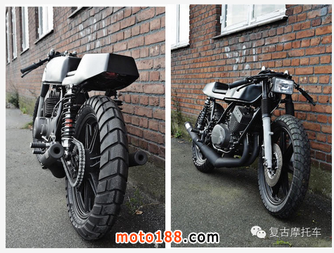 一直以來,大家都覺得復古摩托車就應該是這樣,然而今天這臺yamaha rd400 caferacer,卻反其道而行之,徹頭徹尾的和“圓”過不去。整車線條大范圍采用了棱棱角角的“方”元素,但卻絲毫沒影響它的美感,看來,“圓滑”不一定是復古改裝的唯一出路,在大家都追求流暢圓滑的線條時,你出其不意的拿出一個棱角分明的樣本,也許會有意想不到的效果,希望這臺車能為大家的改裝開拓一下思路。