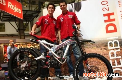 在西班牙巴塞羅那某年車展當中,DERBI DH2.0進行全球首演。這一輛外型看似越野自行車的概念車,搭載了可輸出最大馬力8hp的100c.c.汽油引擎,加上僅有40kg的重量,重量馬力比達到5kg/hp。