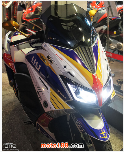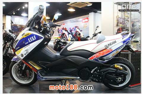 核心提示: 在本年初的一次活動中已經被這臺高達貼紙拉花的新款2015 T-MAX 530吸引,可惜當時忙於拍攝活動,忘記拍攝車身細節。今天,在