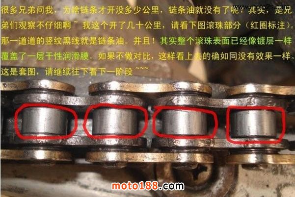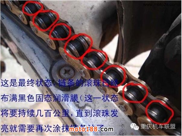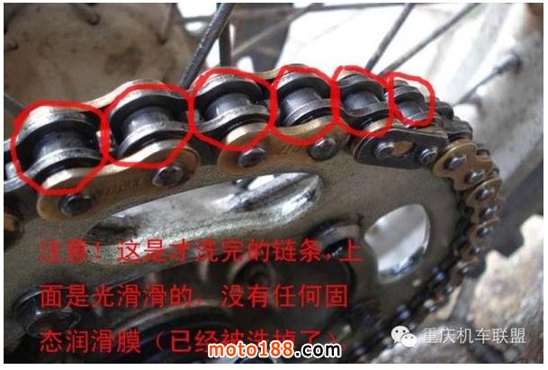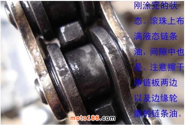 2.清潔后的上油也是很重要的,千萬不可使用機油或具有粘性的潤滑油噴劑進行上油,因為這樣會使鏈條更加容易沾上行駛中的沙塵,讓鏈條更快的污損。X寶上賣的10來塊錢之類的鏈條油請大家別用了,粘灰不說,配方里面除了油,根本沒有潤滑的東西,效果和廢機油一樣。